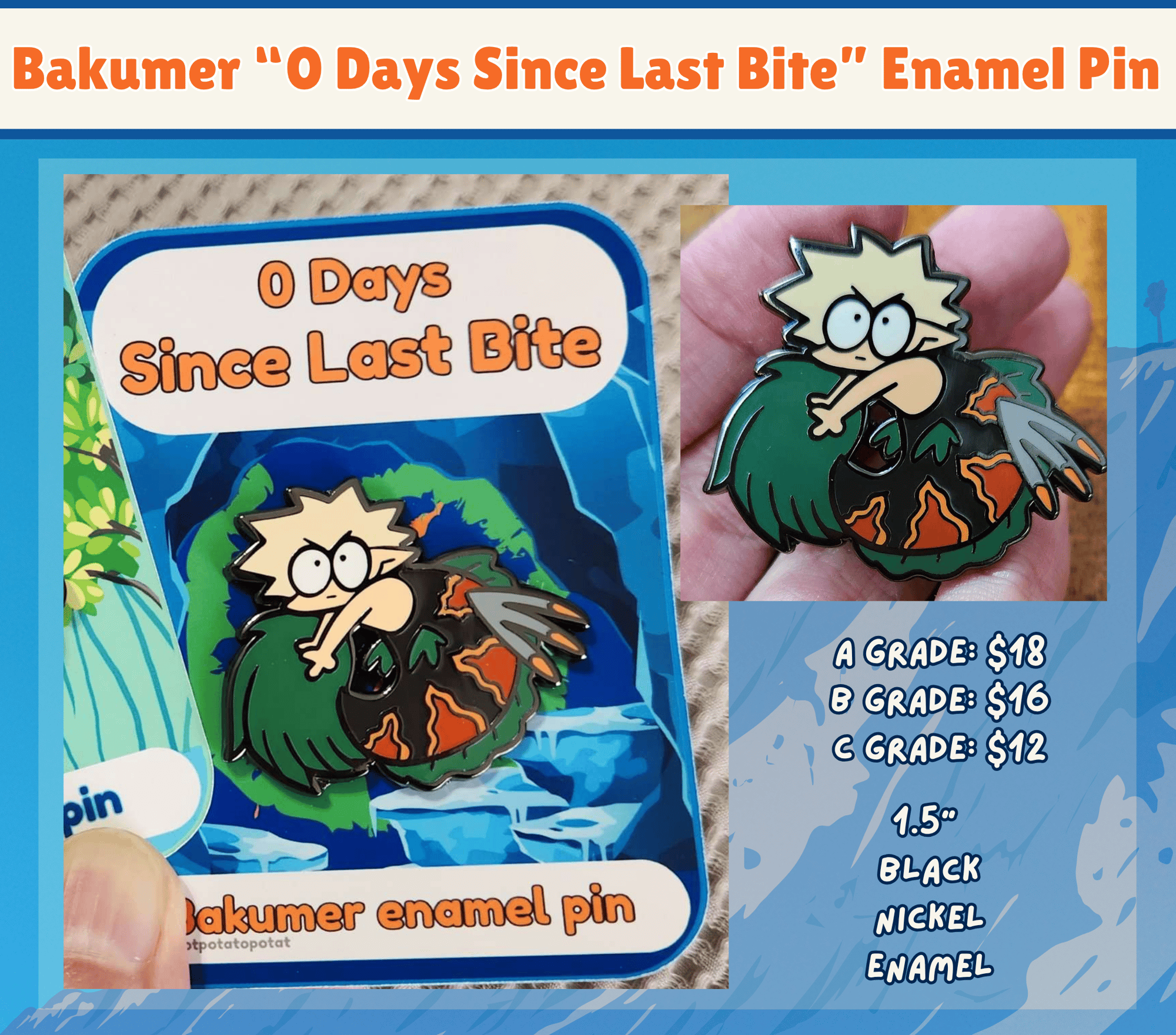 Bakumer "0 Days Since Last Bite" Enamel Pin - well, he bit you so. 0 days.